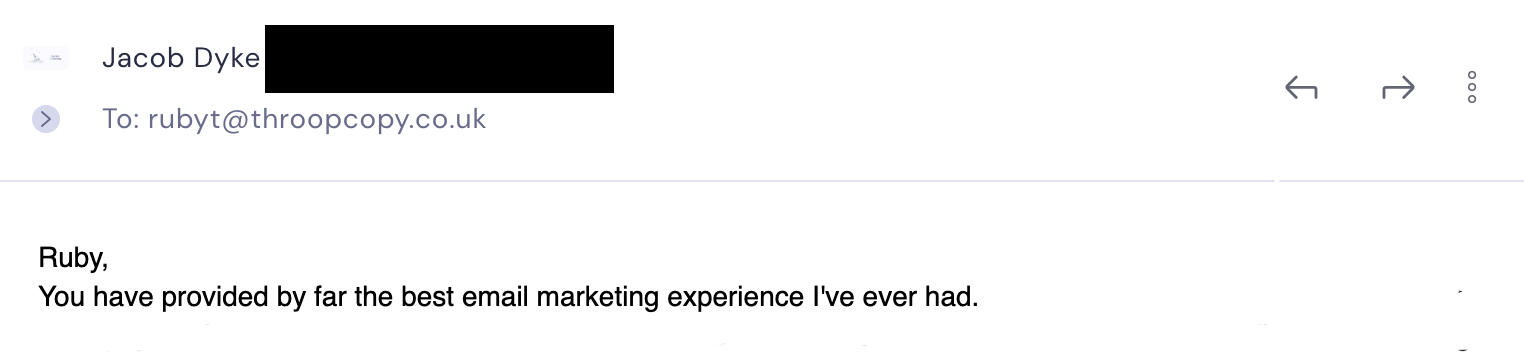 Look, I’m not claiming to be the only copywriter in the world that’s pulling in these figures.But trust me when I say there is a very small pool of serious copywriters who genuinely care about your growth. I just happen to be one of them.The other 98% have come straight from a Biz-Opp webinar looking to make a quick buck.(And have ZERO intention to stick around for the long-term.)So whilst you could put your business in the hands of a bro with a $15 Udemy course – if you're really serious about scaling your business, you need someone who's been in the trenches.